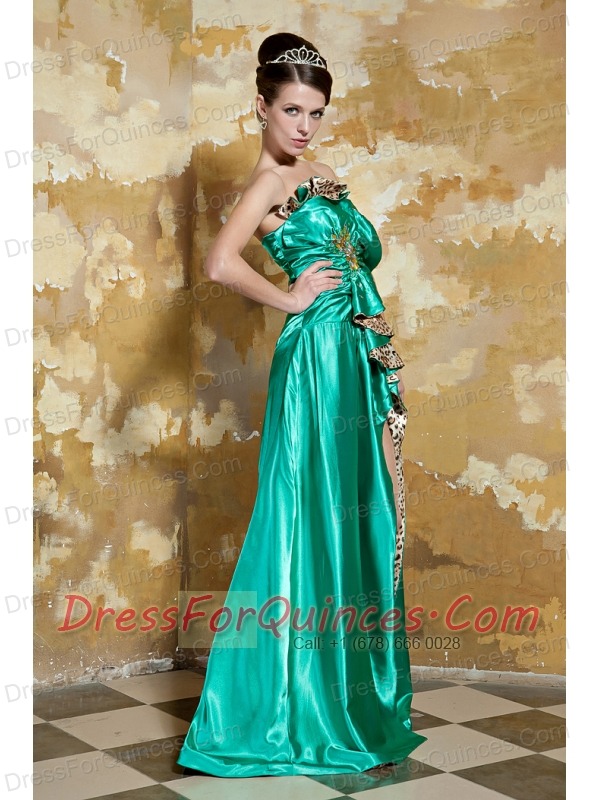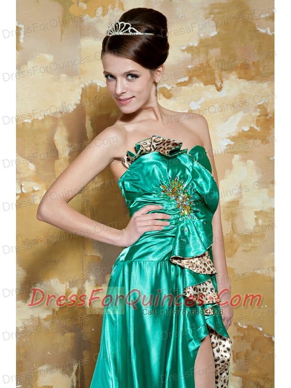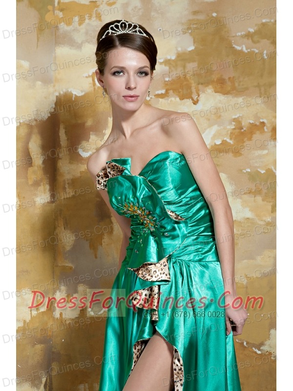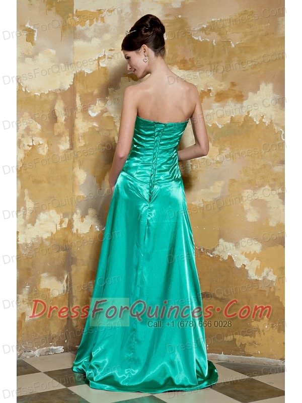 Prom Dress Green Empire Sweetheart Brush Train Silk Like Satin Beading
