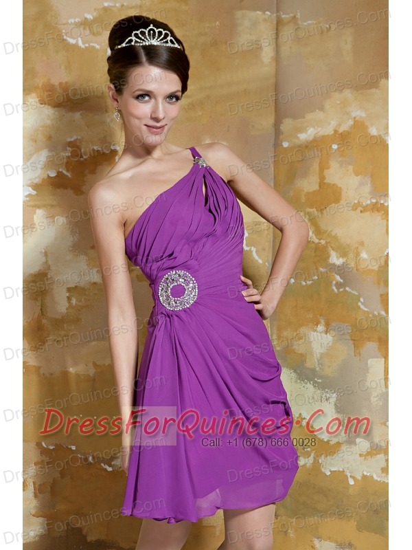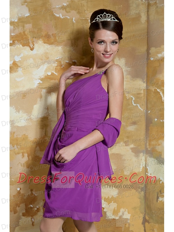 Prom Dress Lavender Empire One Shoulder Mini-length Chiffon Beading