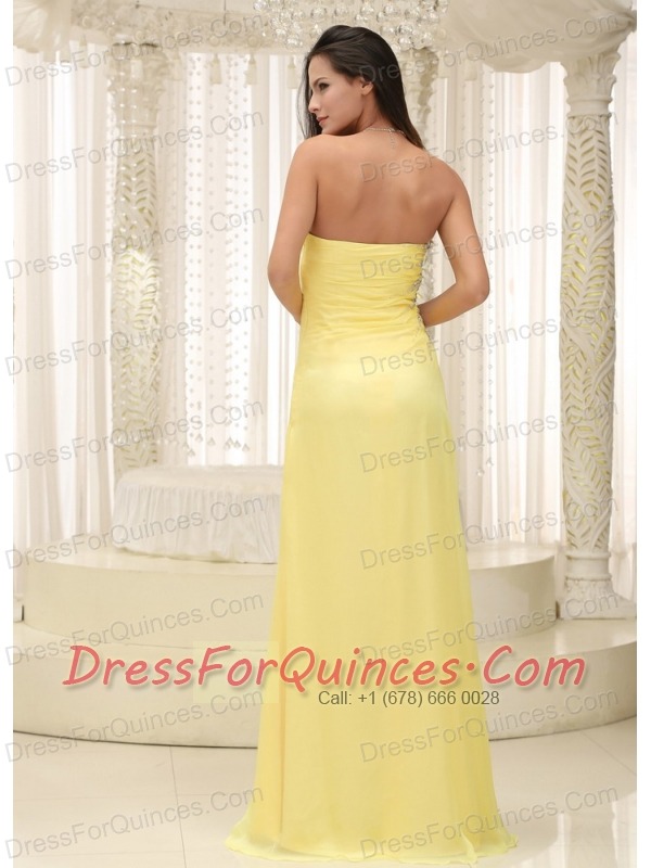 Prom Dress Light Yellow High Slit Strapless Chiffon Skirt