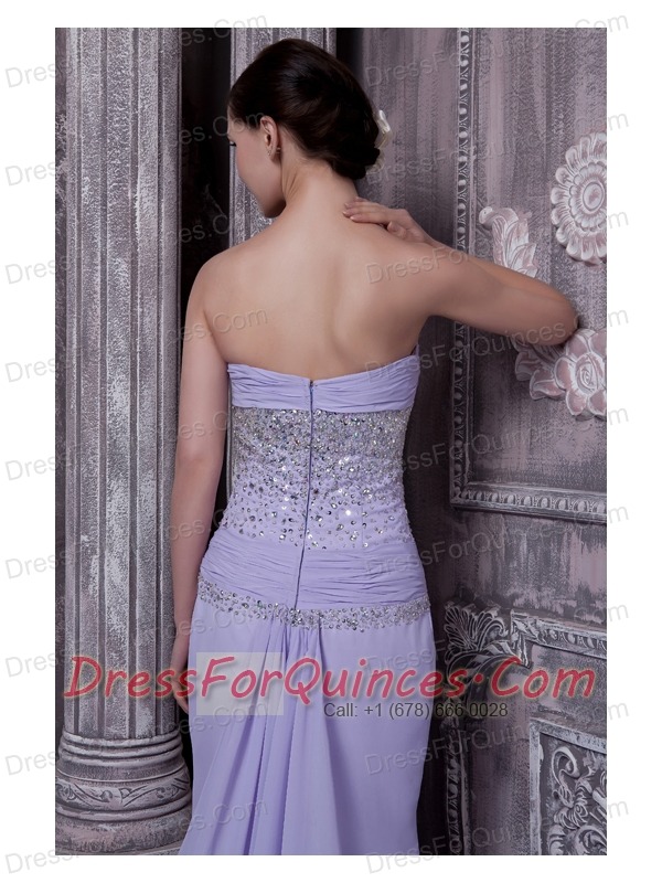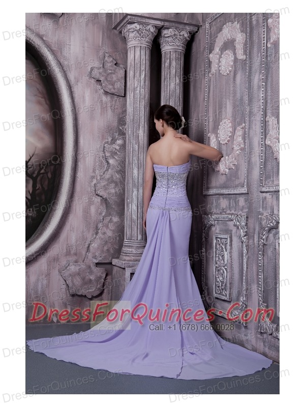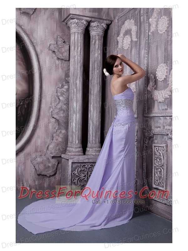Prom Dress Lilac Column Sweetheart Court Train Chiffon Beading