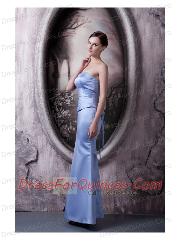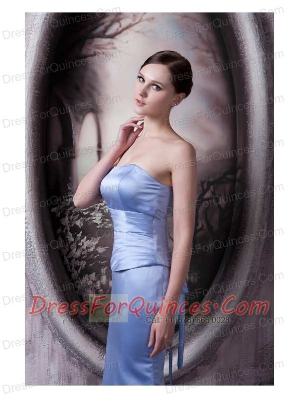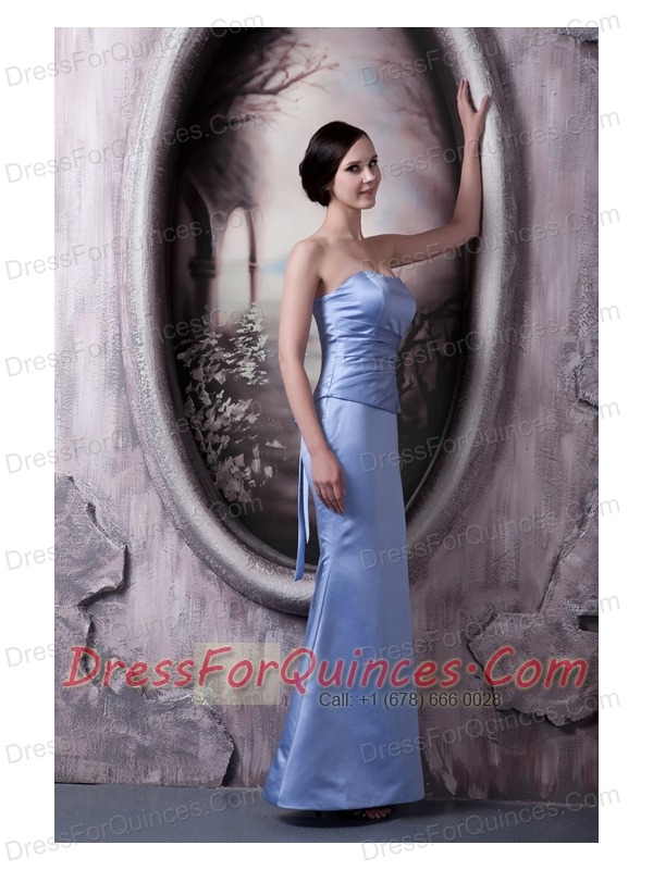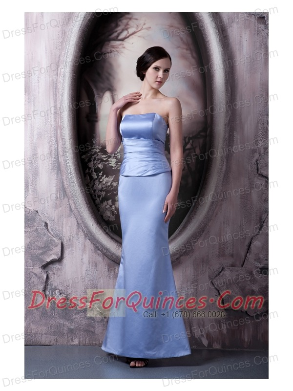 Prom Dress Lilac Mermaid Strapless Ankle-length Satin Ruch