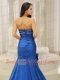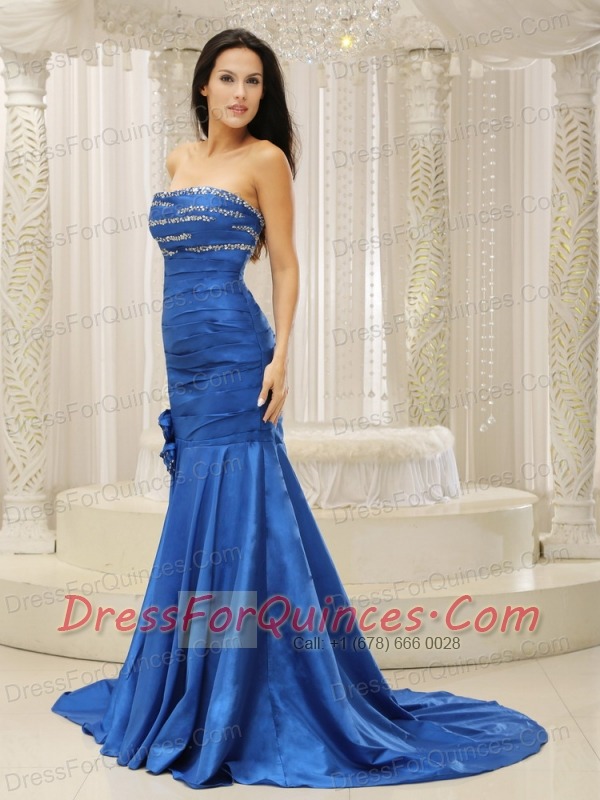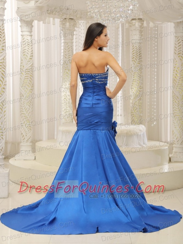 Prom Dress Mermaid Royal Blue and Court Train For Beaded Decorate Bust Hand Made Flowers