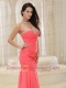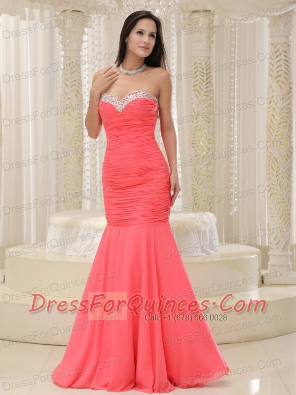 Prom Dress Mermaid Sweetheart Coral Red Beaded Decorate Bust