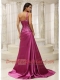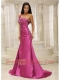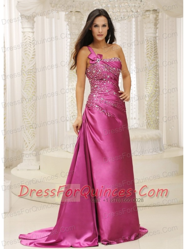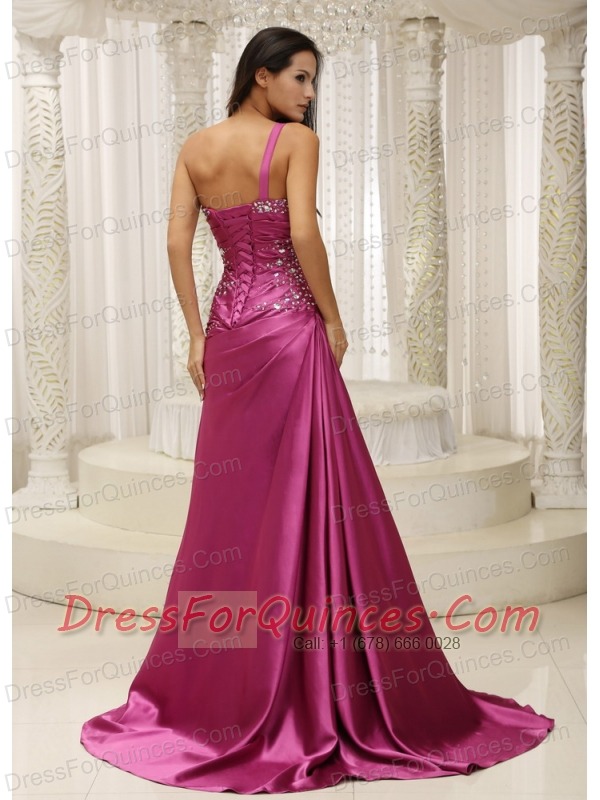 Prom Dress One Shoulder Beaded Decorate Bodice Satin