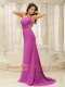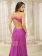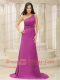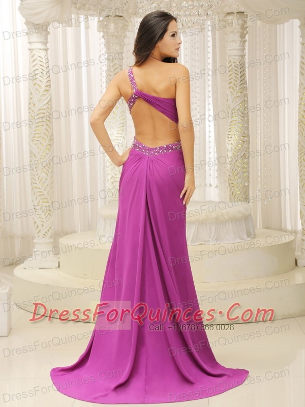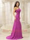 Prom Dress One Shoulder Beaded Decorate Waist Brush Train Chiffon Fuchsia