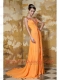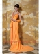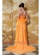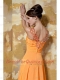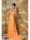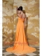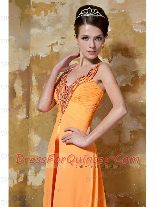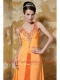 Prom Dress Orange Column V-neck Brush Train Chiffon Beading