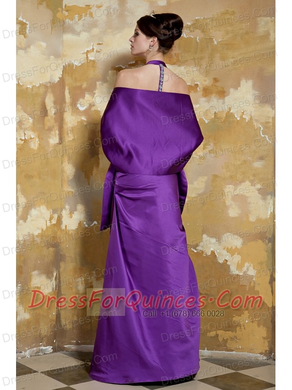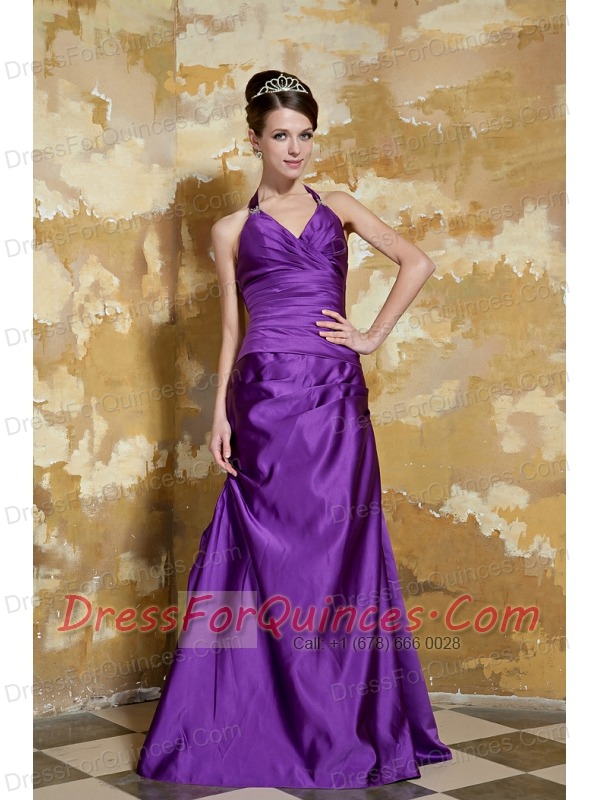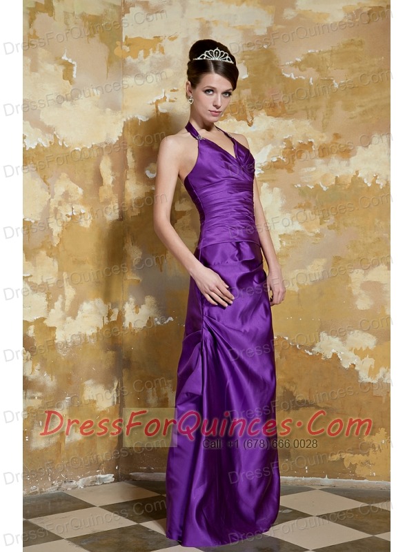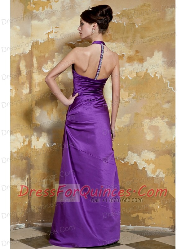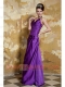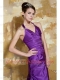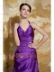Prom Dress Purple Column V-neck Floor-length Taffeta Beading