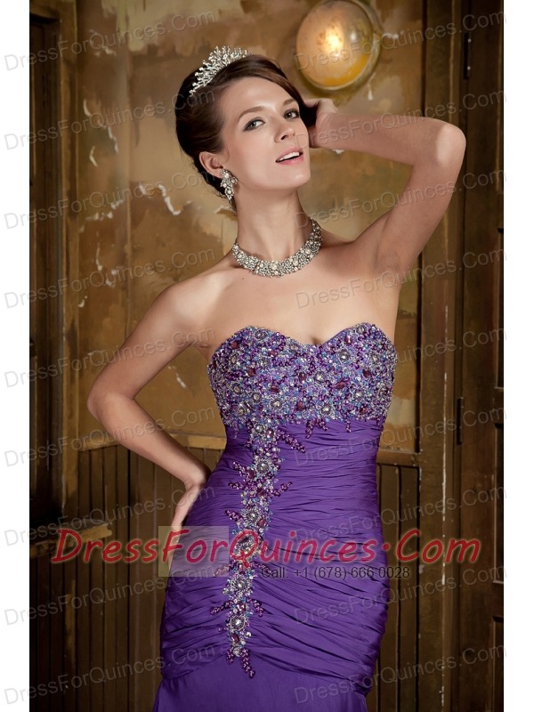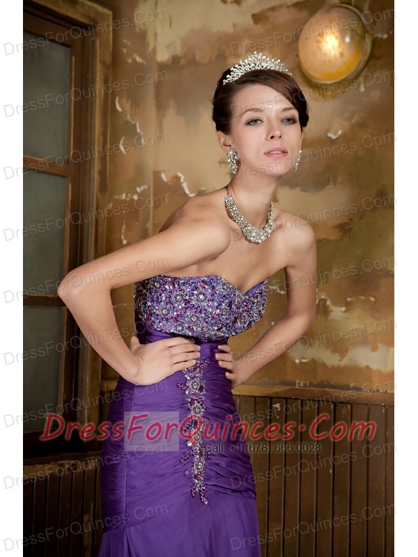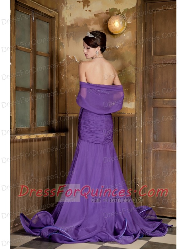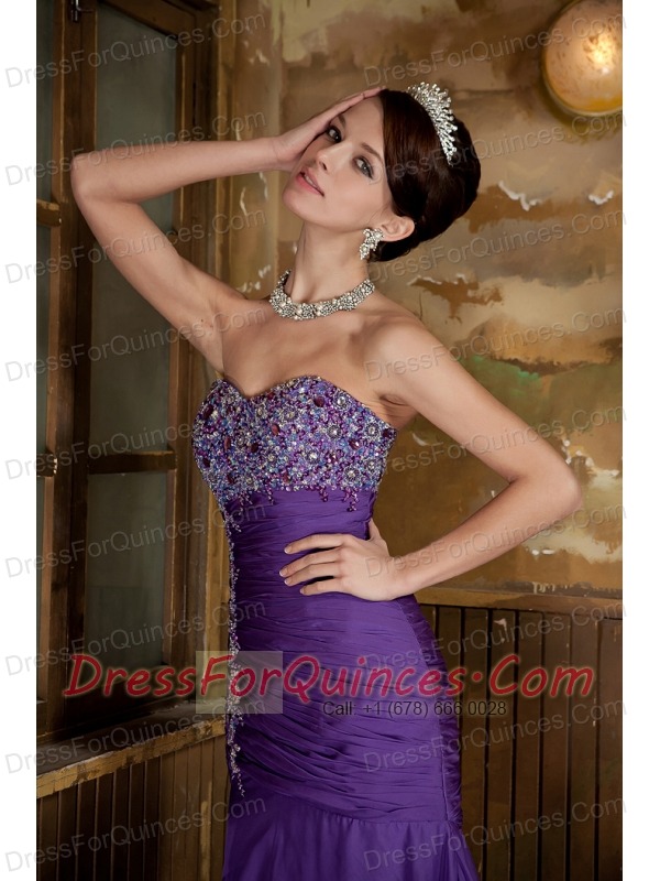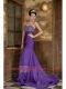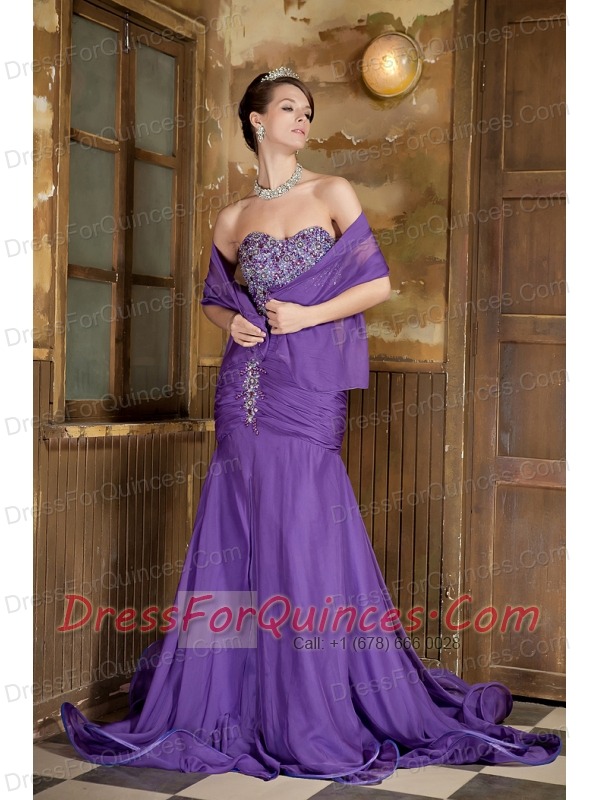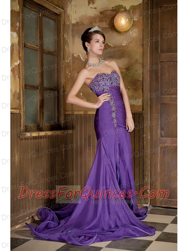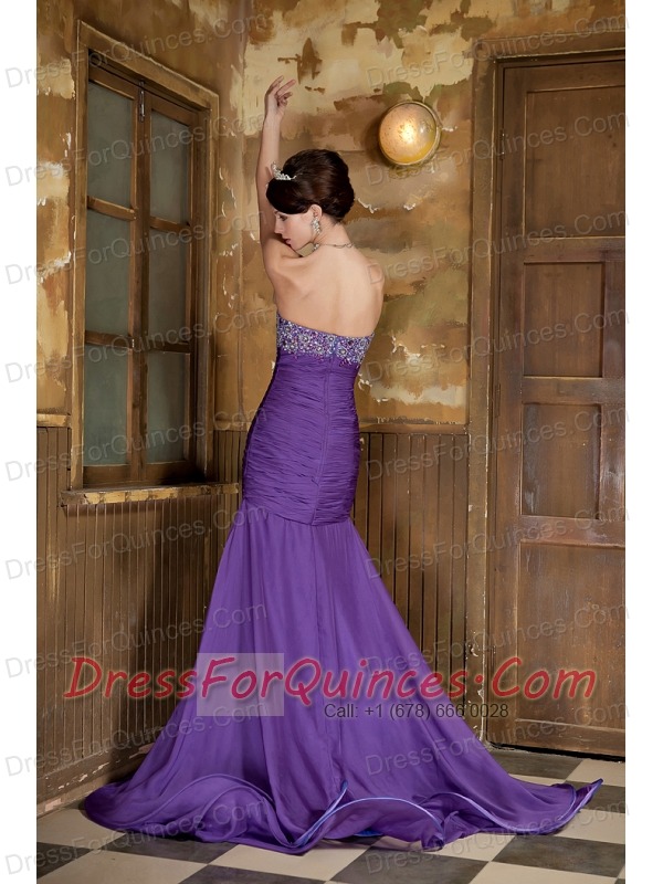 Prom Dress Purple Mermaid Sweetheart Brush Train Chiffon Beading