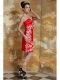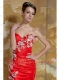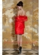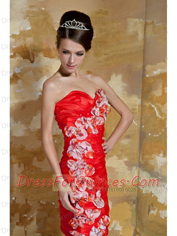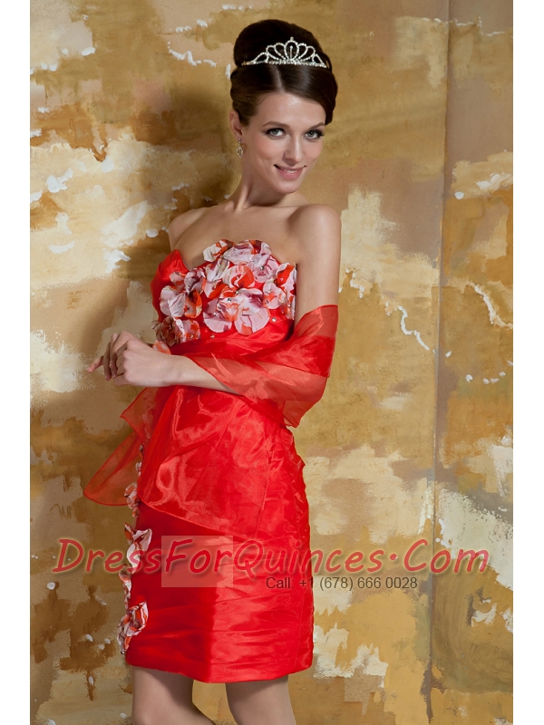 Prom Dress Red Column Sweetheart Mini-length Taffeta Hand Made Flowers