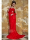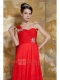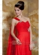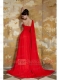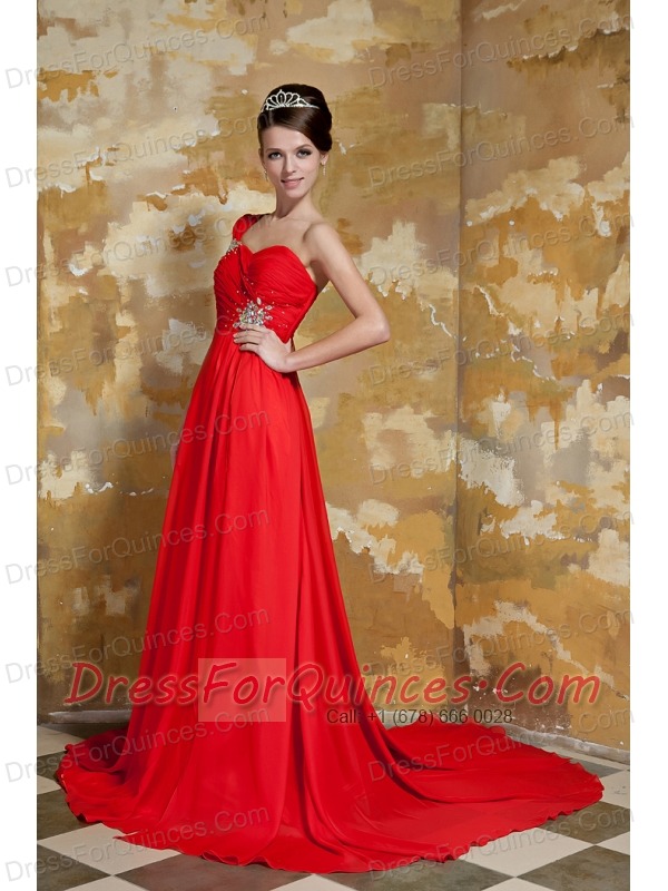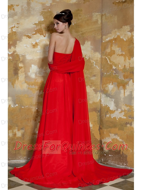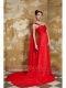 Prom Dress Red Empire One Shoulder Watteau Train Chiffon Beading