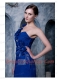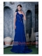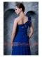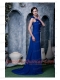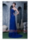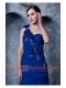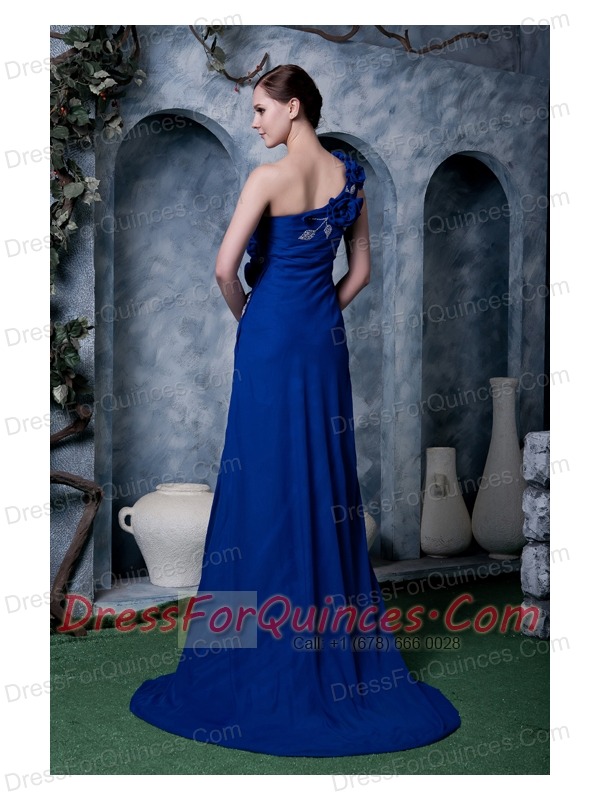 Prom Dress Royal Blue Column One Shoulder Brush Train Hand Made Flower and Beading Chiffon