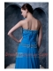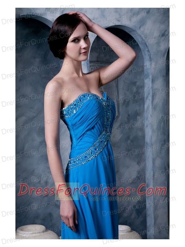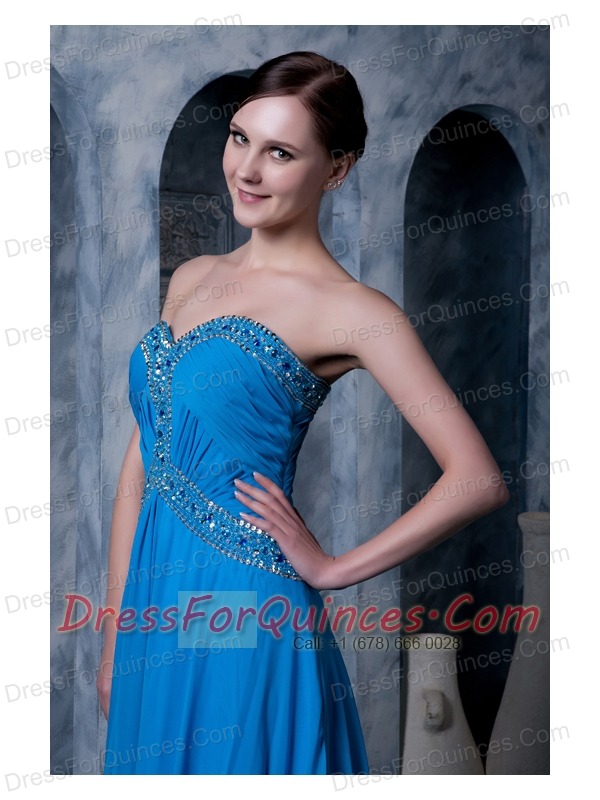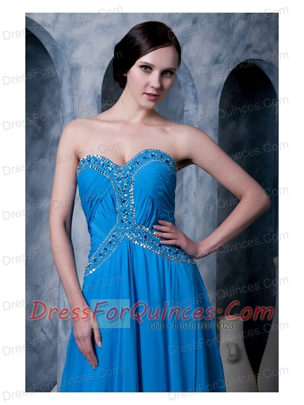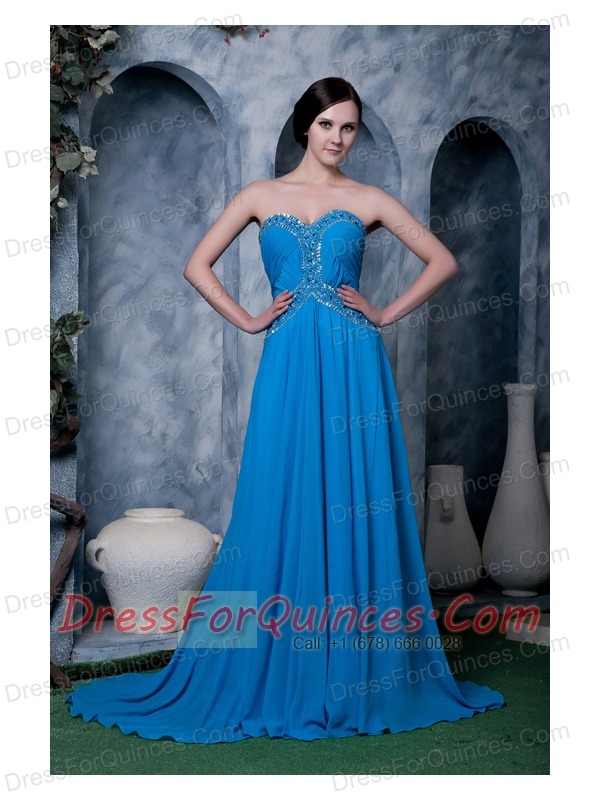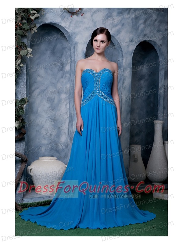 Prom Dress Sky Blue Empire Sweetheart Brush Train Chiffon Beading