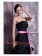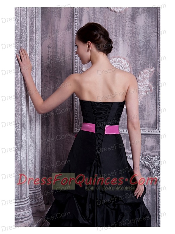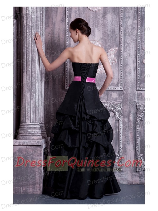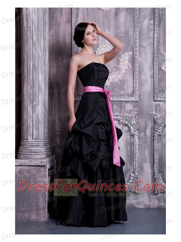 Prom Dress Strapless Black A-line Floor-legnth Taffeta Sash and Pick-ups