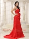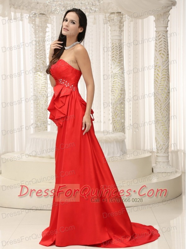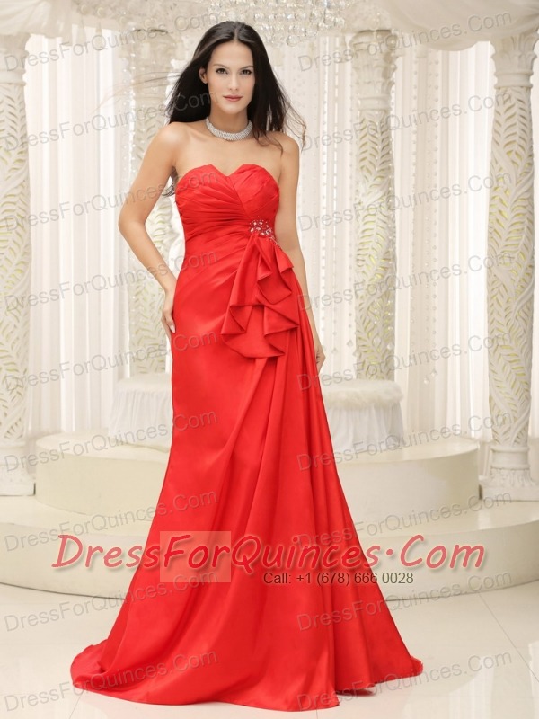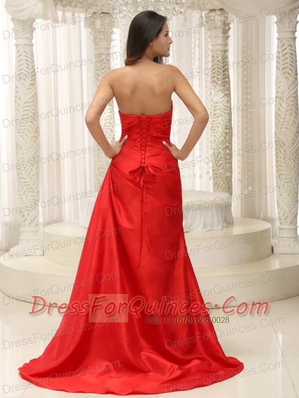 Prom Dress Sweetheart Red Ruched Bodice Brush Train Lace-up