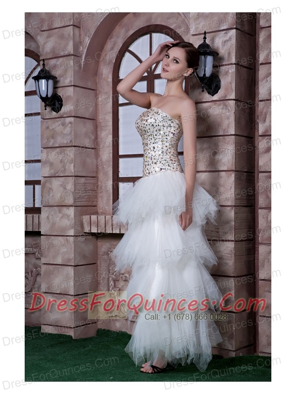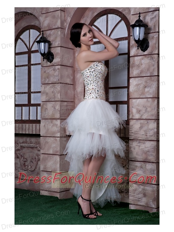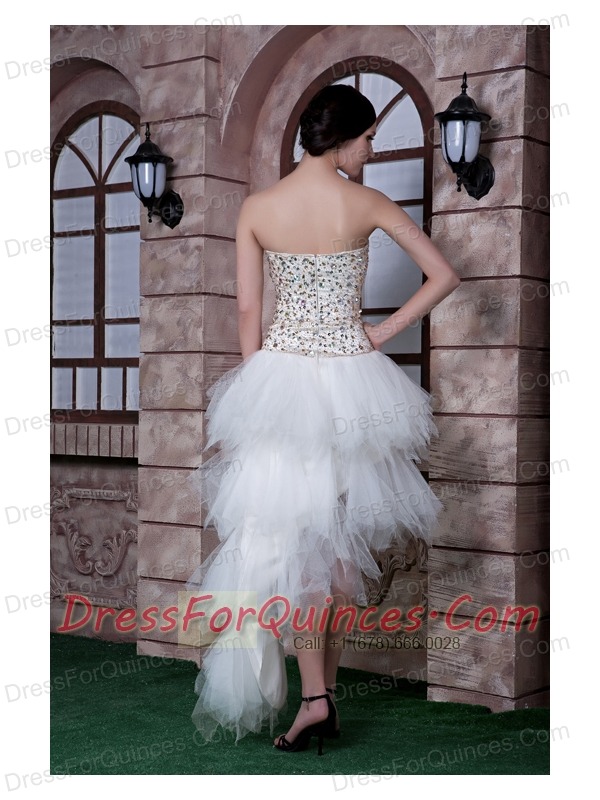 Prom Dress White Column Strapless High-low Beading Taffeta and Tulle