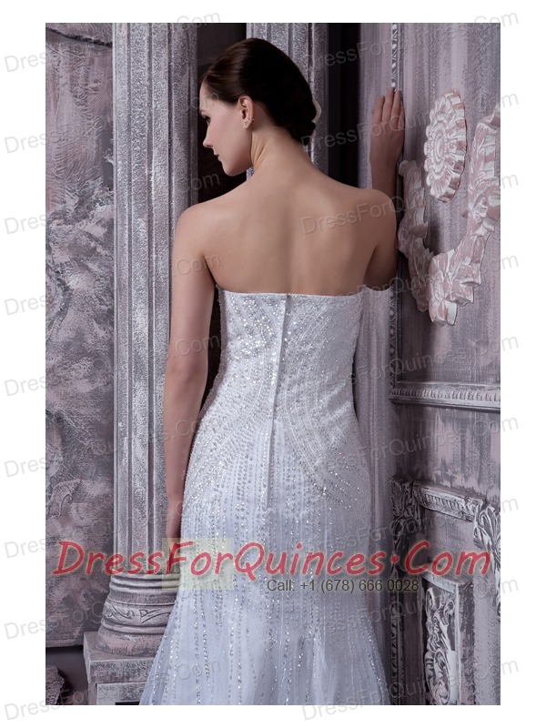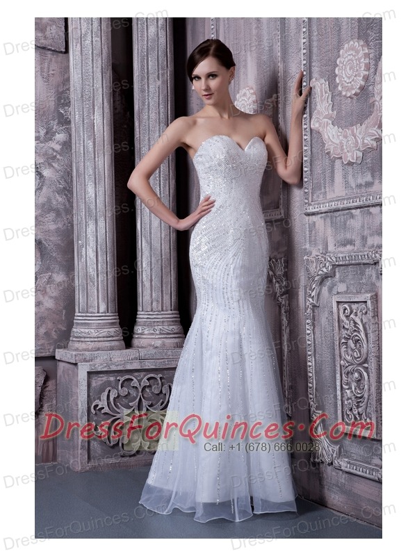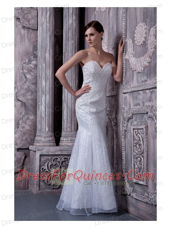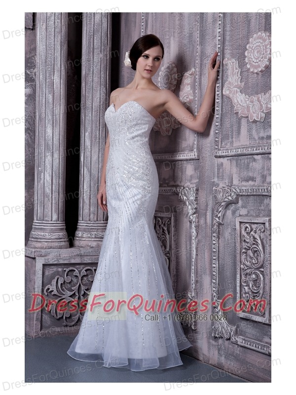 Prom Dress White Mermaid Sweetheart Floor-length Elastic Woven Satin and Organza Beading