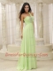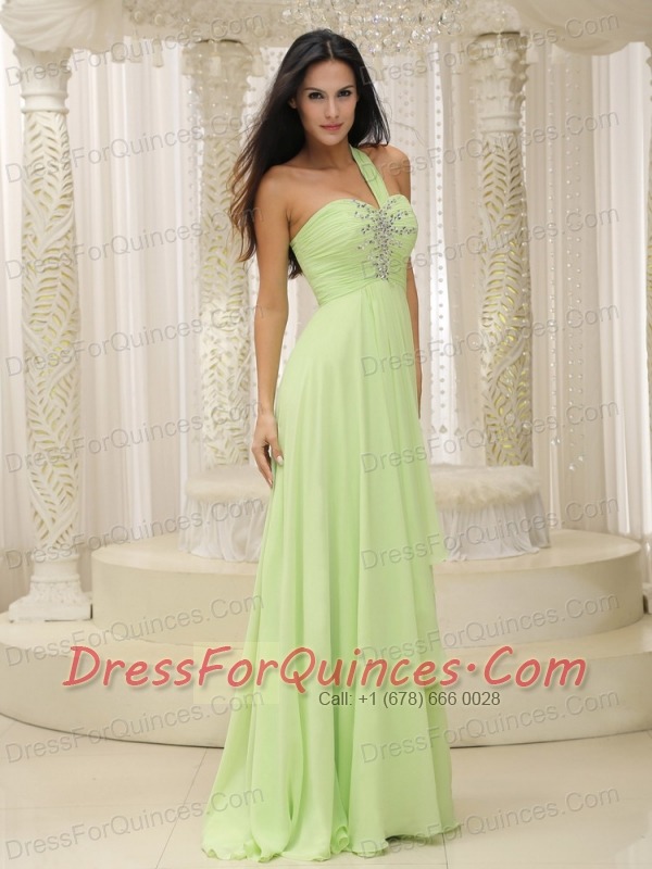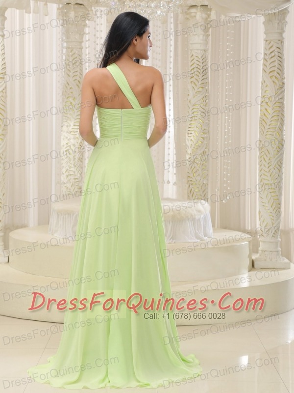 Prom Dress Yellow Green One Shoulder and Ruched Bodice Beaded Decorate Bust