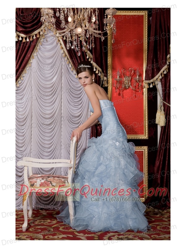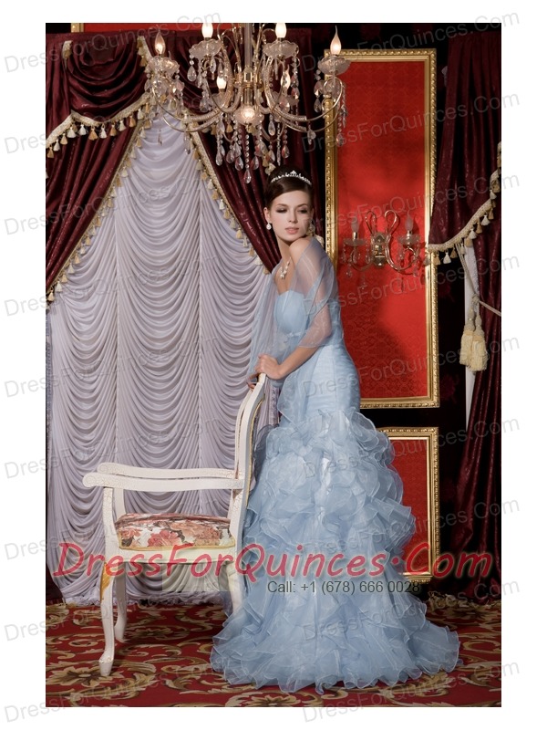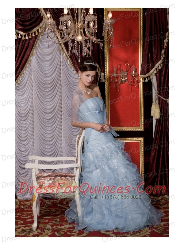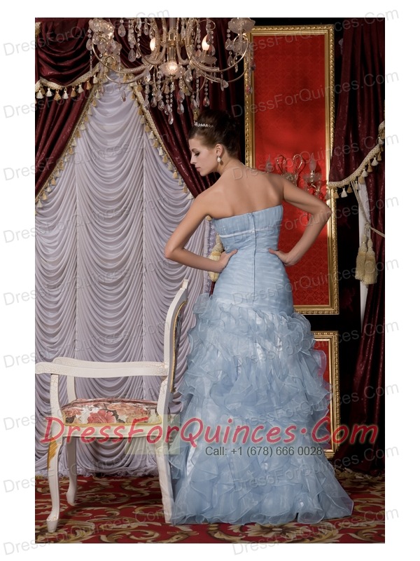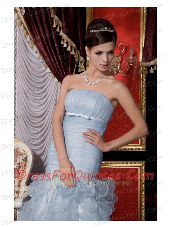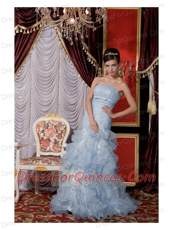 Prom / Evening Dress Baby Blue Mermaid Strapless Floor-length Organza Belt and Ruffles