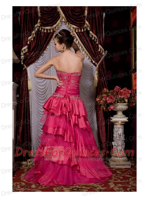 Prom / Evening Dress Fuchsia Empire Sweetheart Brush Train Taffeta and Tulle Beading