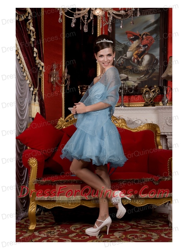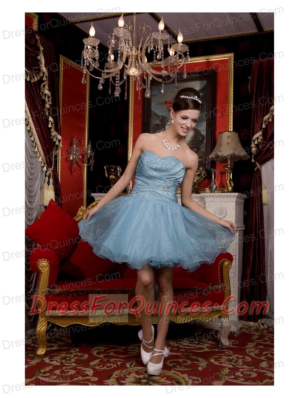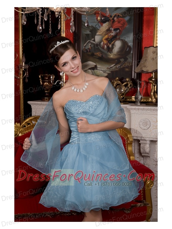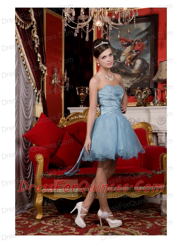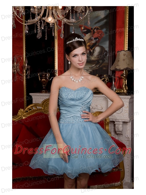 Prom / Homecoming Dress Light Blue A-line / Pricess Sweetheart Mini-length Organza Beading