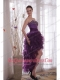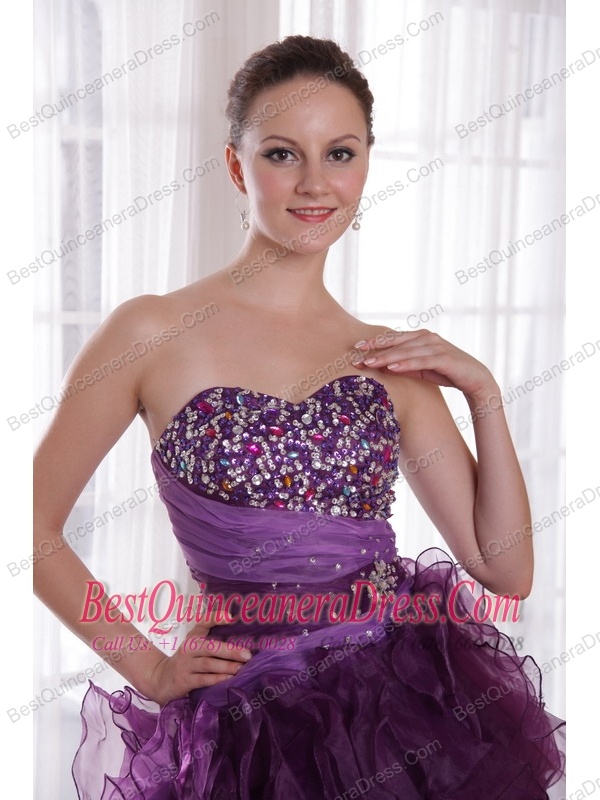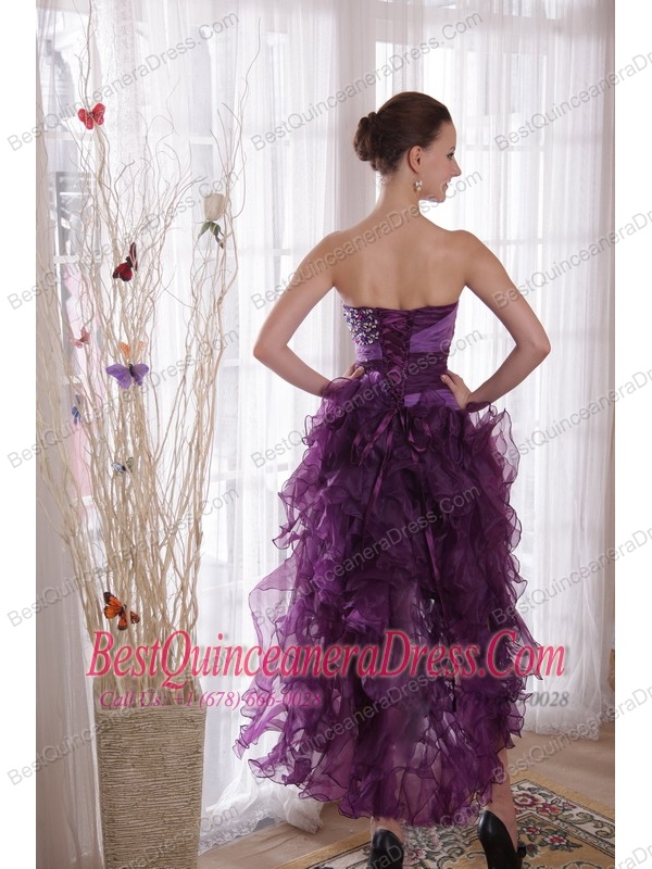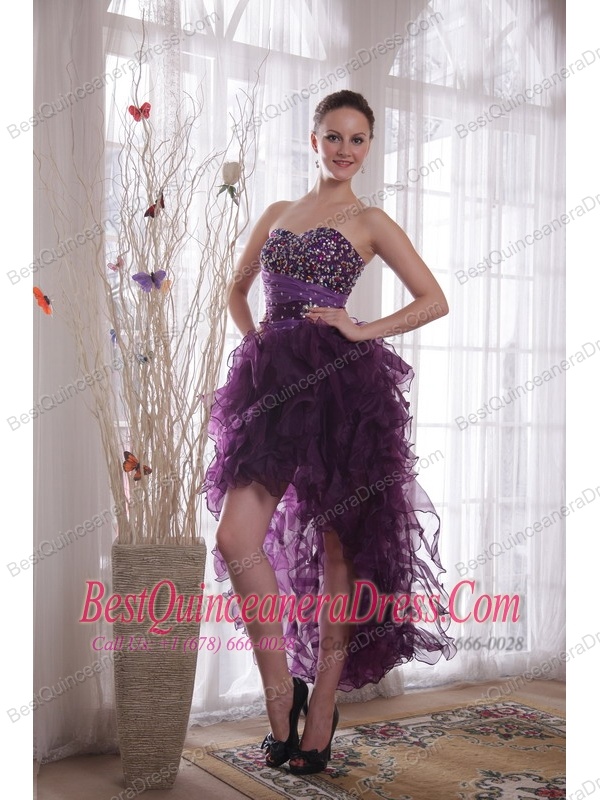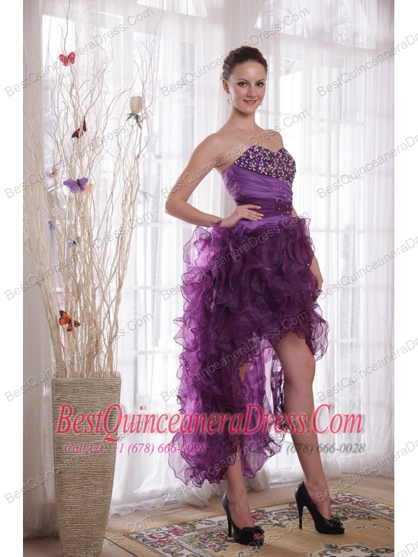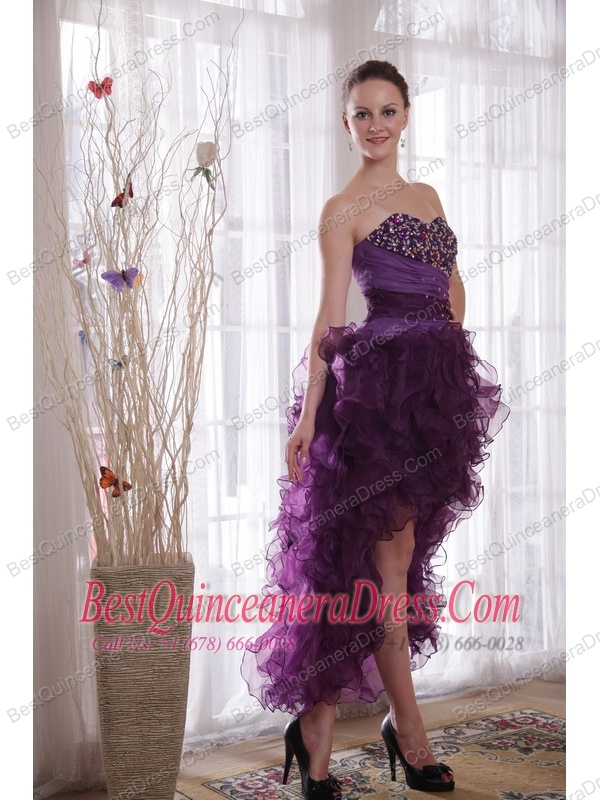 Purple Column Sweetheart High-low Organza Beading Prom / Cocktail Dress