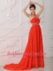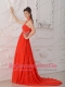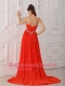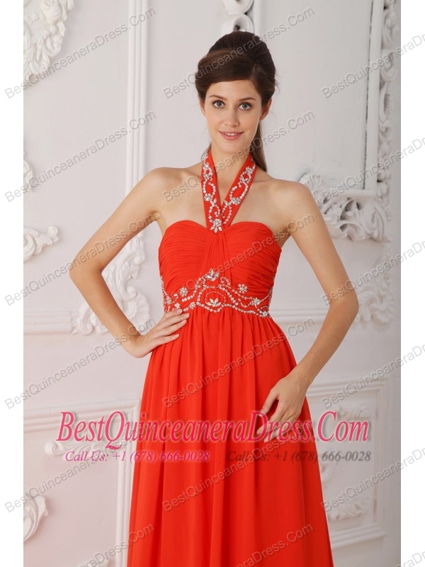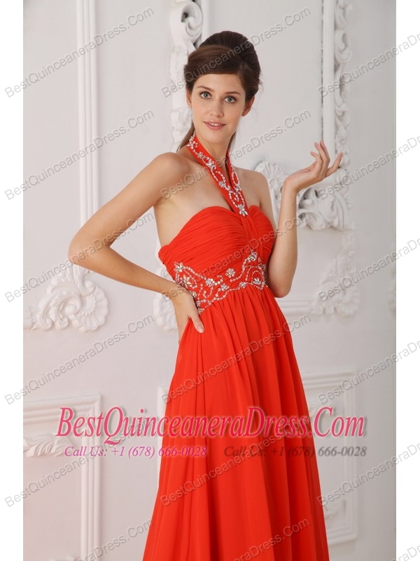 Red Empire Halter Court Train Chiffon Beading Red Prom / Evening Dress
