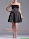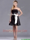 Romantic A Line Strapless White Be-ribboned Short Prom Dress in Black