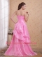 Rose Pink A-line / Princess Sweetheart Brush Train Organza Beading and Ruch Prom / Celebrity Dress