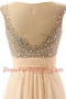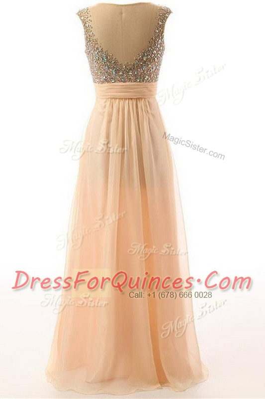 Scoop Floor Length Backless Prom Party Dress Peach for Prom and Party with Beading and Belt
