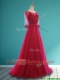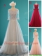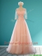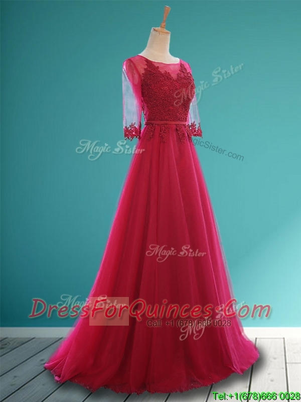 See Through Scoop Half Sleeves Prom Dresses with Appliques and Belt