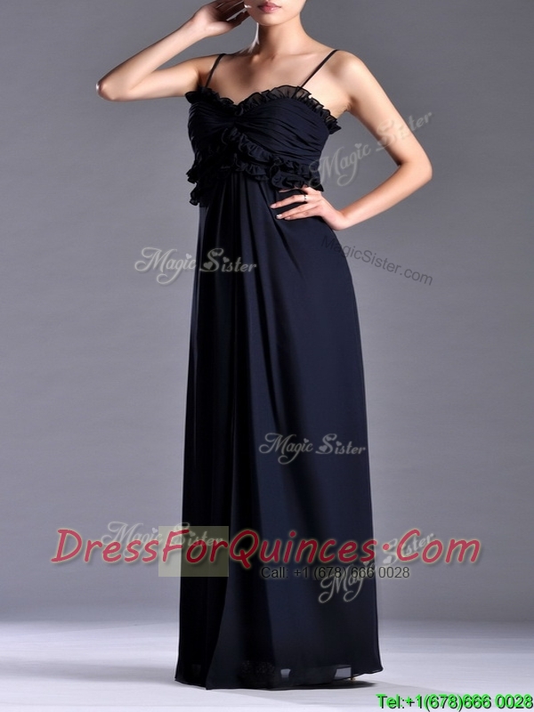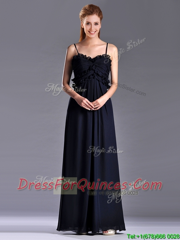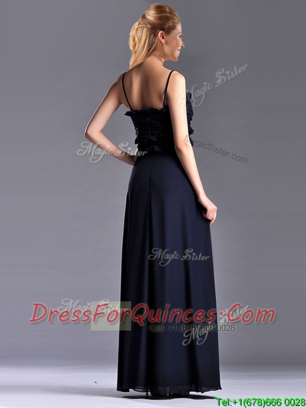 Simple Empire Straps Chiffon Ruching Navy Blue Prom Dress for Holiday
