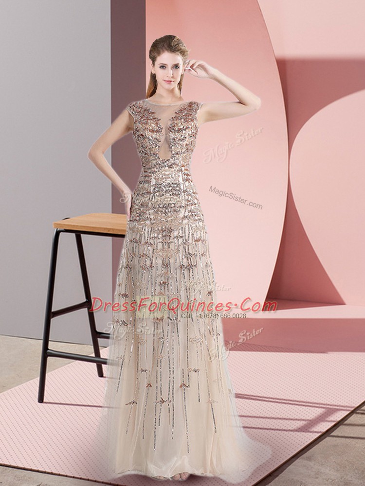 Sleeveless Beading Zipper Evening Dress with Champagne Brush Train