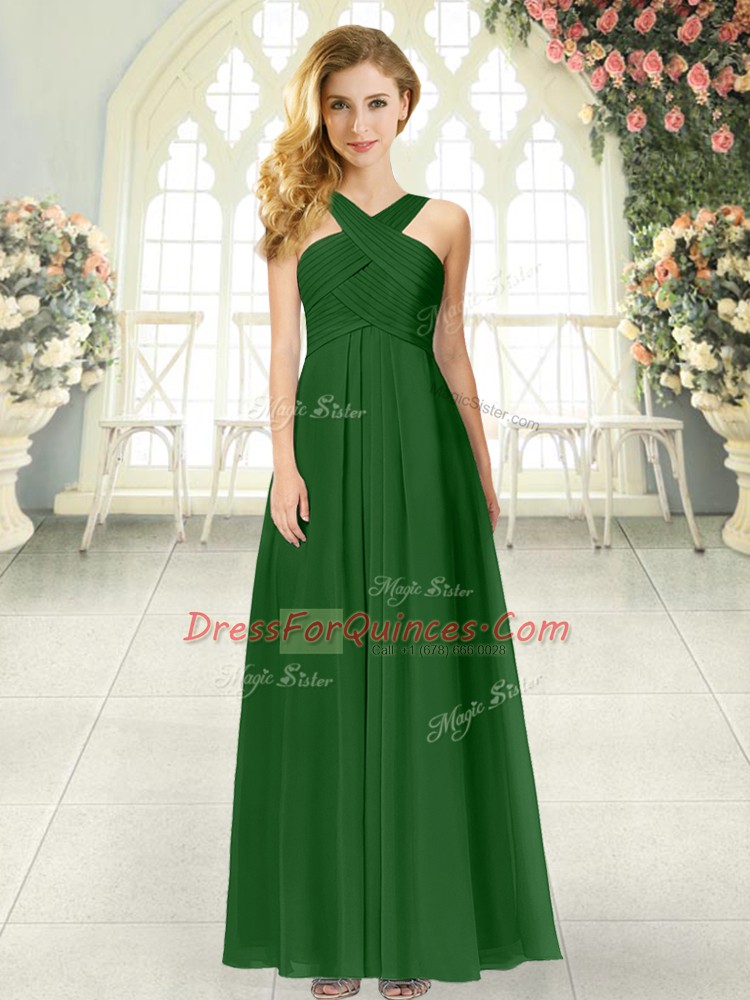 Sleeveless Floor Length Ruching Zipper Evening Dress with Green