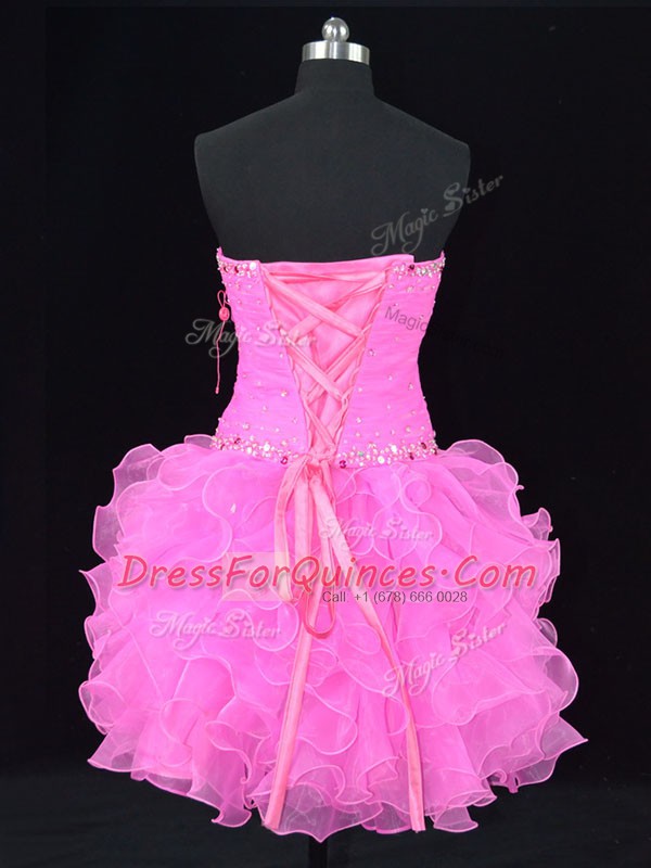 Sleeveless Organza Lace Up Evening Dress in Pink with Beading