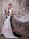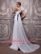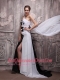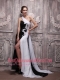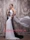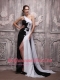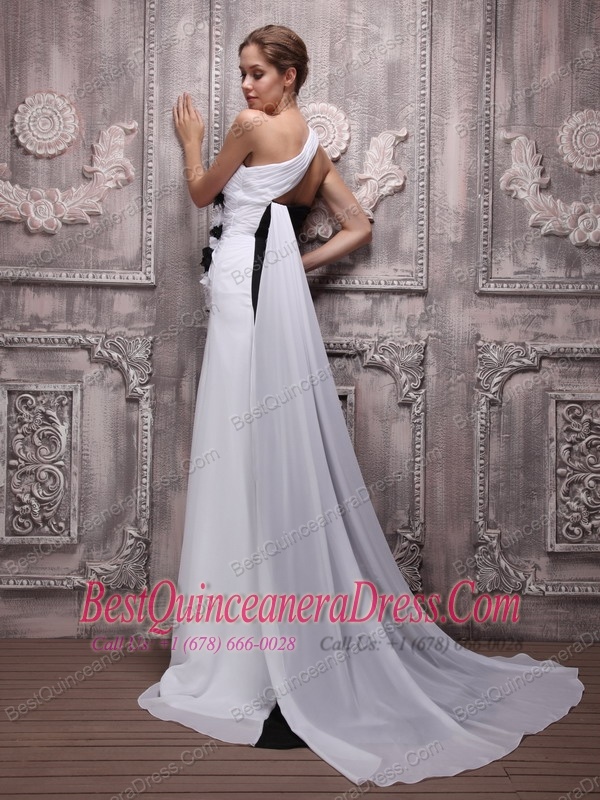 White and Black Empire One Shoulder Watteau Train Chiffon Handle Flowers Prom Dress