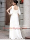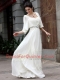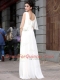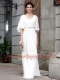 White Column/Sheath Square Half Sleeves Chiffon Floor Length Zipper Beading Prom Gown