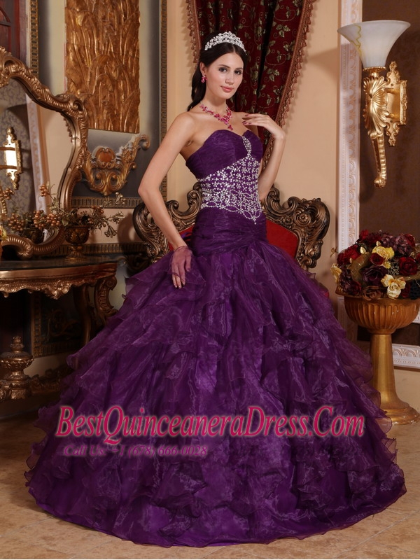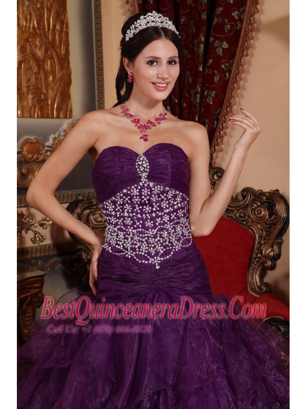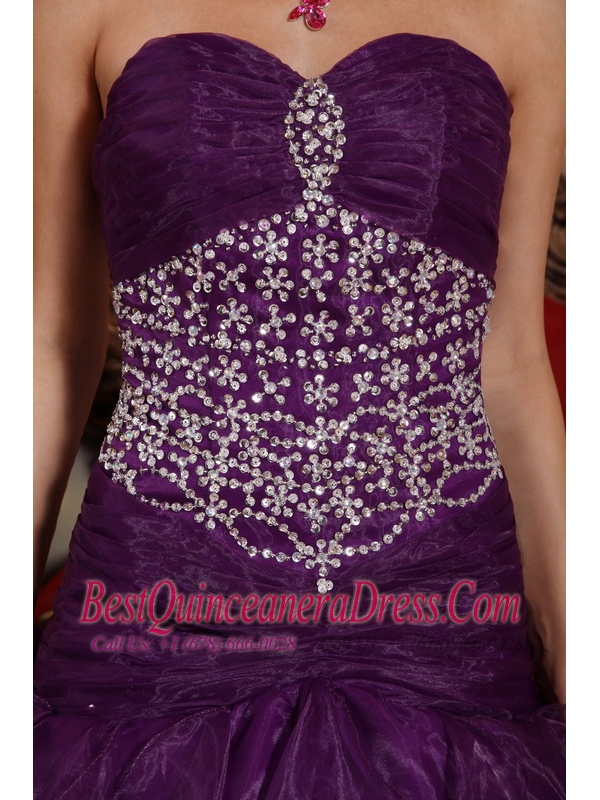 Purple A-line Sweetheart Floor-length Organza Beading Quinceanera Dress