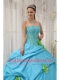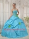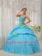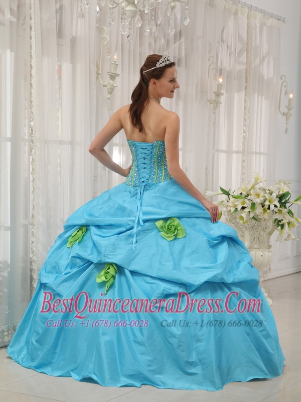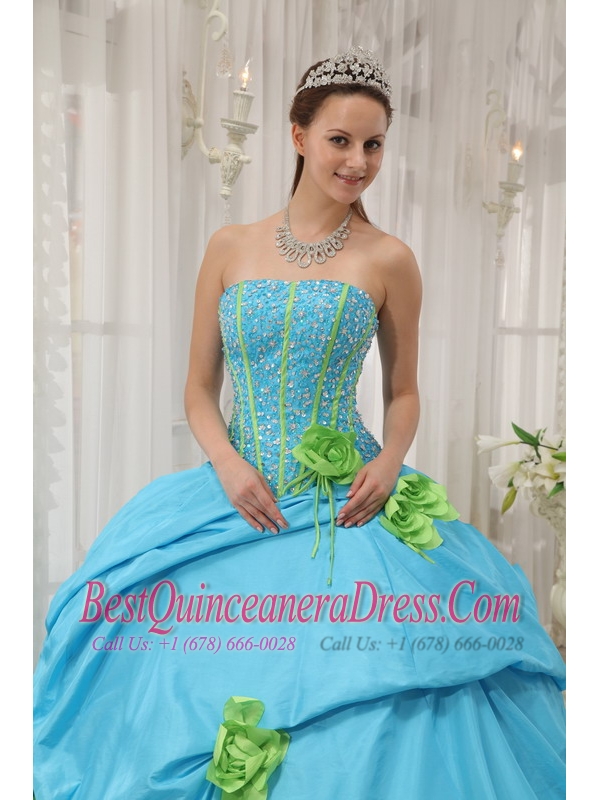 Baby Blue and Spring Green Quinceanera Dress Strapless Taffeta Beading and Hand Flowers