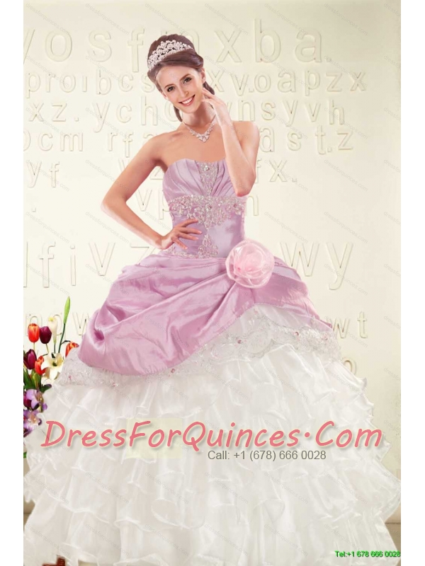 Elegant Multi Color Strapless Hand Made Flower Quinceanera Dress and Ruching Pretty Prom Dresses and Ruffles Straps Little Girl Dress
