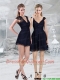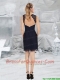 2015 Lace Empire V Neck Navy Blue Prom Dress with Cap Sleeves