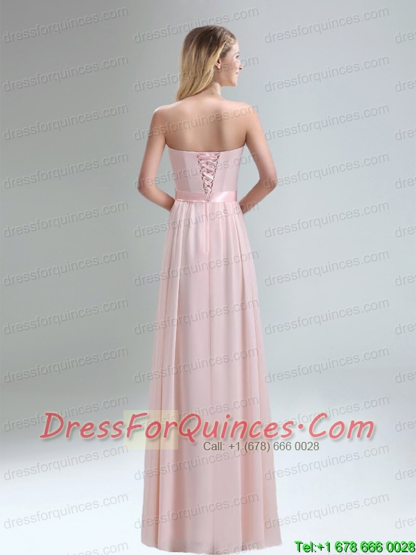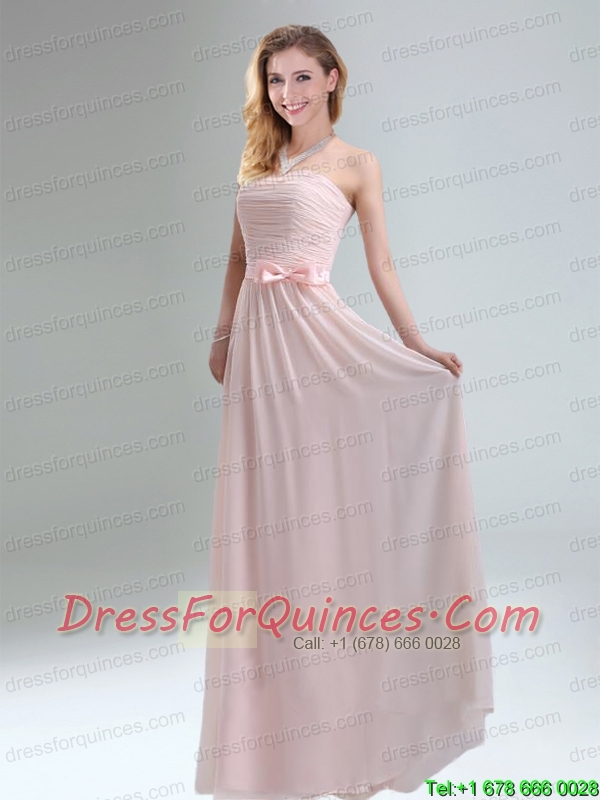2015 Most Popular Light Pink Empire Sexy Prom Dress with Bowknot belt