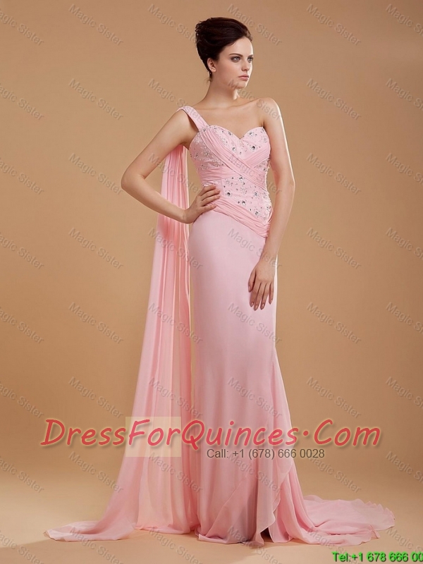 2016 Gorgeous Empire One Shoulder Brush Train Prom Dresses with Watteau Train