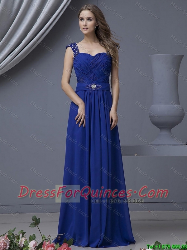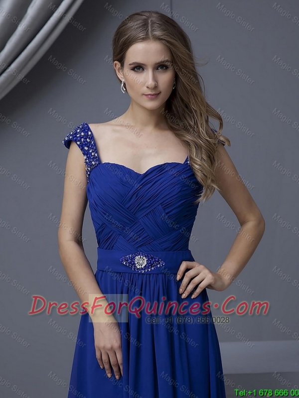 2016 Perfect Straps Beading Long Prom Dresses in Royal Blue