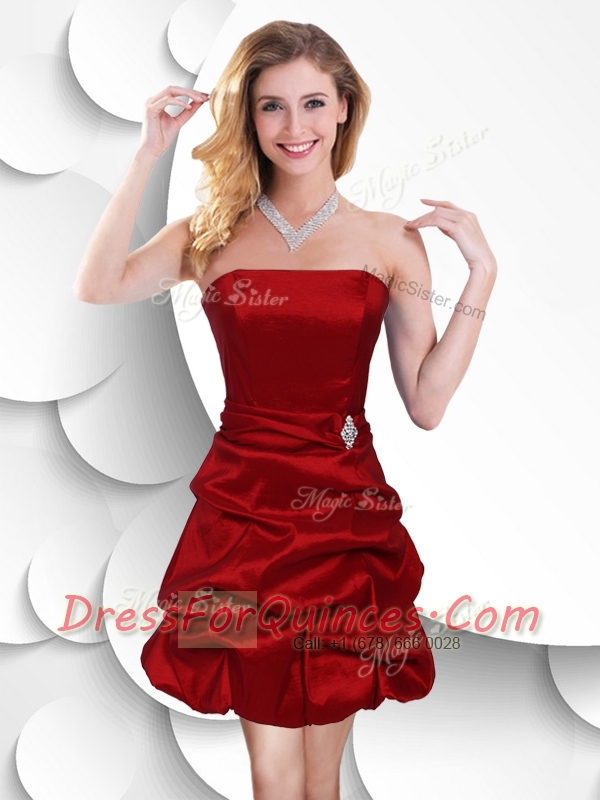 2016 Sexy Strapless Taffeta Wine Red Prom Dress with Bubles