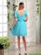 A Line Ruching and Belt V Neck Prom Dress with Cap Sleeves