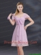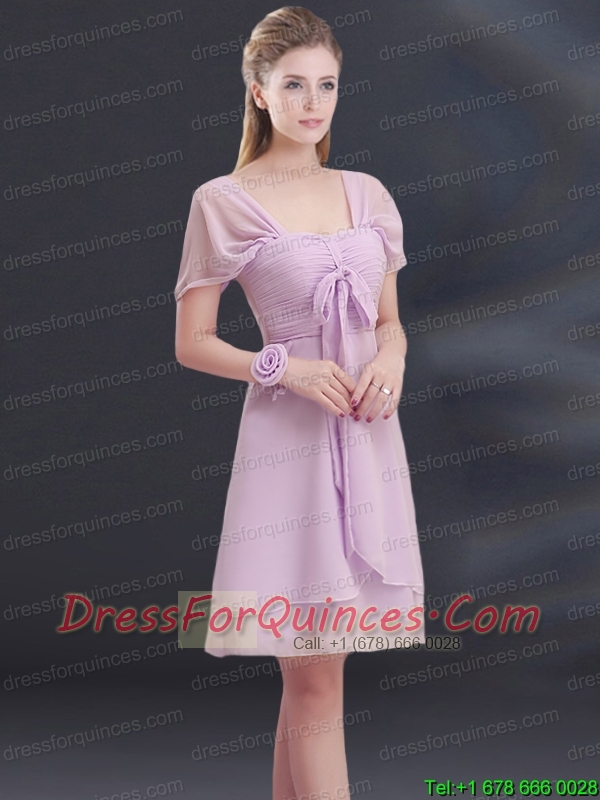 A Line Square Ruhing Prom Dress with Cap Sleeves