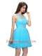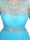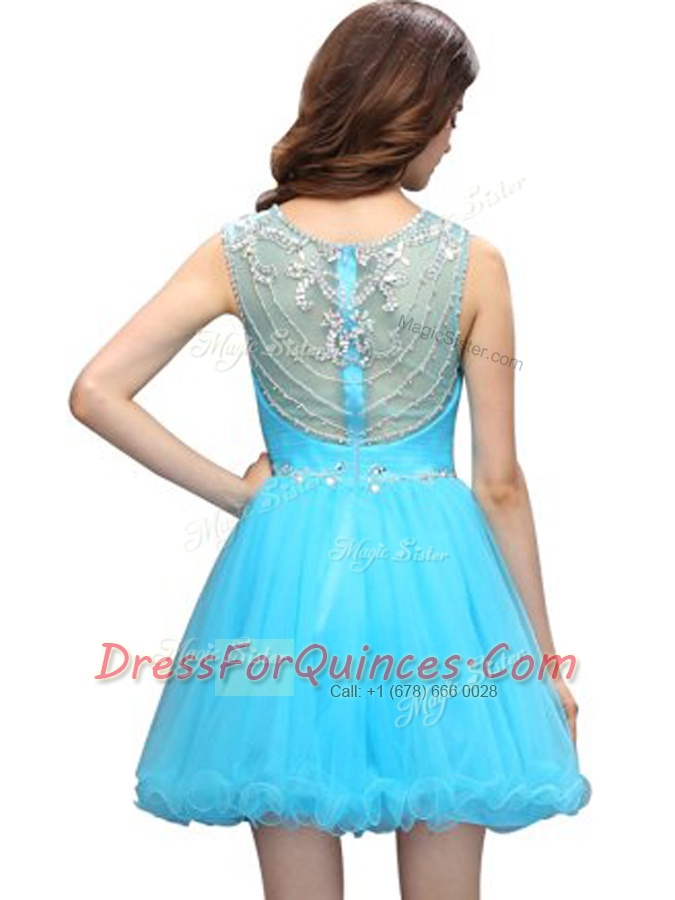 Aqua Blue Zipper Scoop Beading Prom Dress Organza Sleeveless