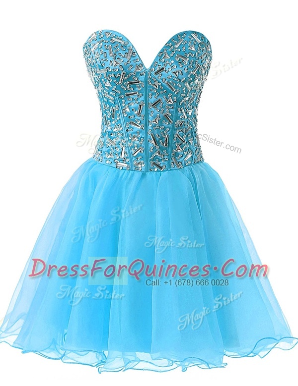Beading Prom Dress Baby Blue Lace Up Sleeveless Knee Length
