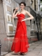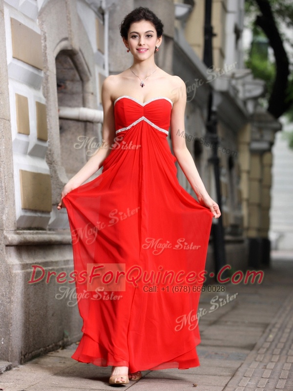 Beading Prom Evening Gown Coral Red Zipper Sleeveless Ankle Length