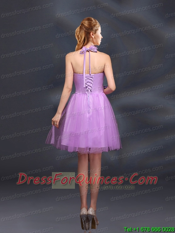Beautiful Lilac A Line Appliques Prom Dresses with Halter